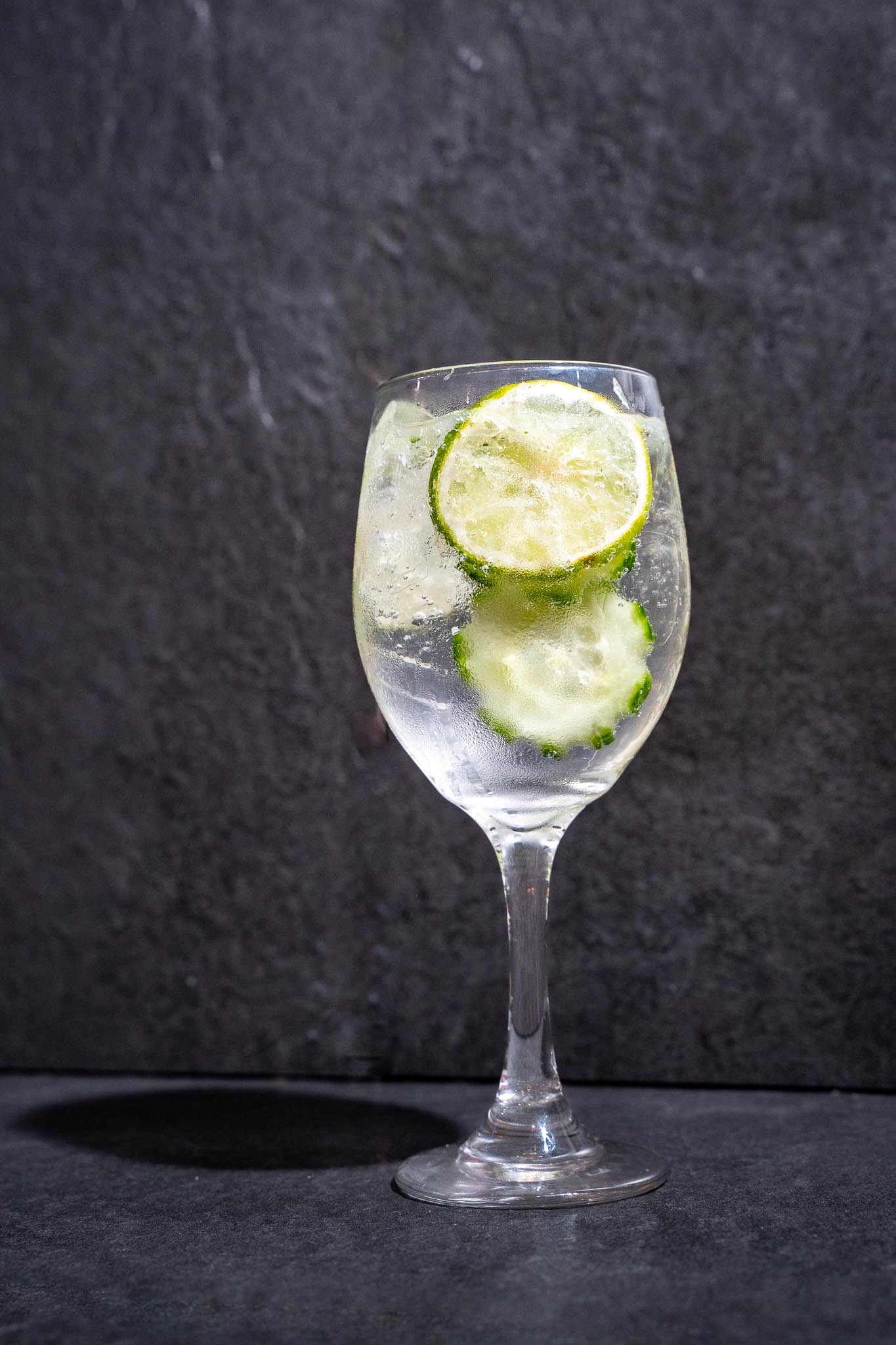 Prosecco, cranberry and apple juice, Rosemerry and cranberries Ice cube
