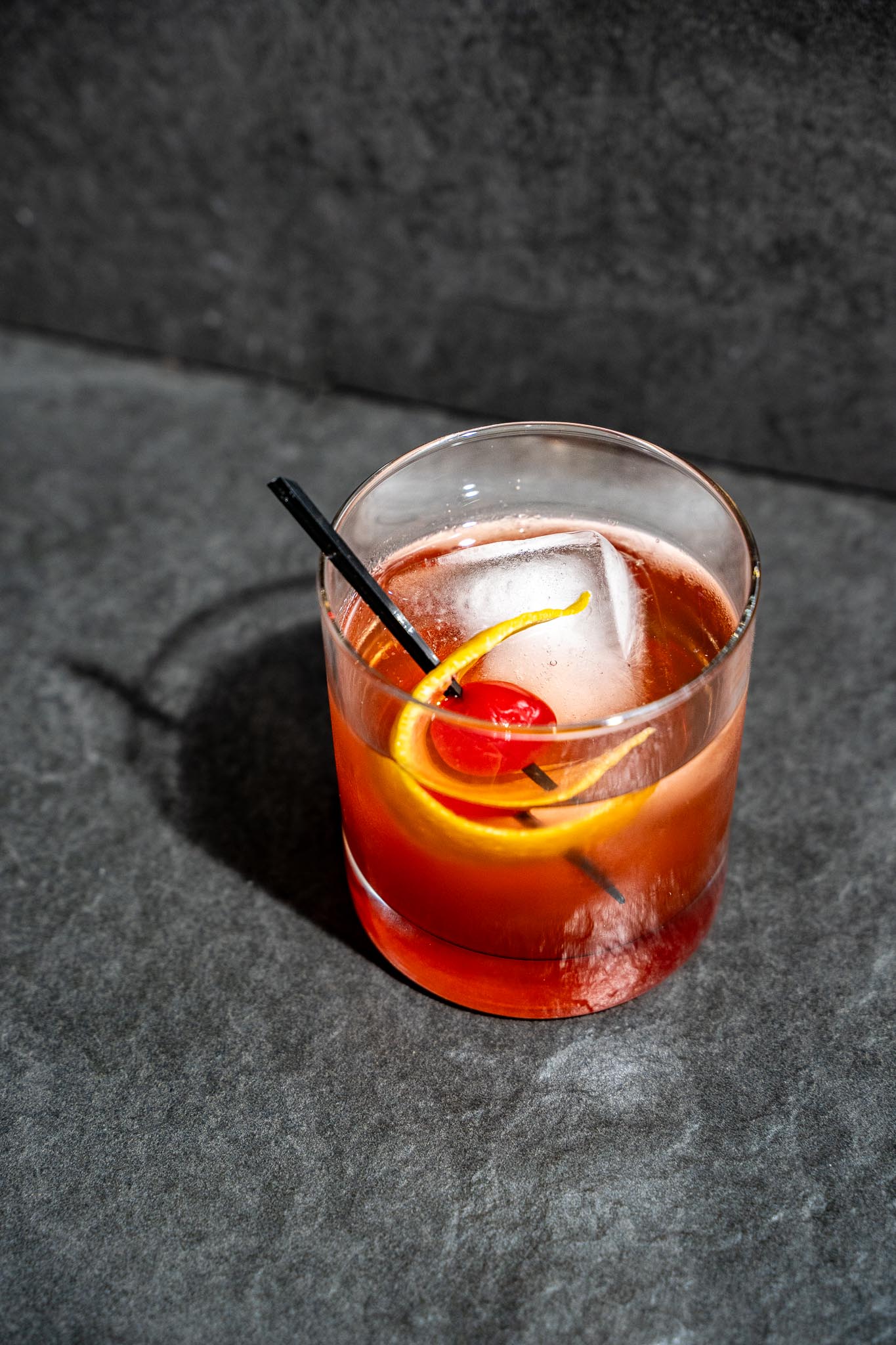 Woodford reserve, angostura bitters, orange bitters , paychaud bitters, simple syrup & orange peel garnish
